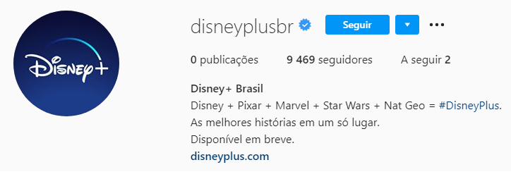 Está chegando! A Disney abriu o Instagram oficial de seu streaming no Brasil, o Disney+. Confira abaixo: