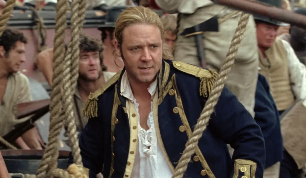 - Russell Crowe passou por treinamento intensivo para aprender técnicas de navegação e esgrima naval.