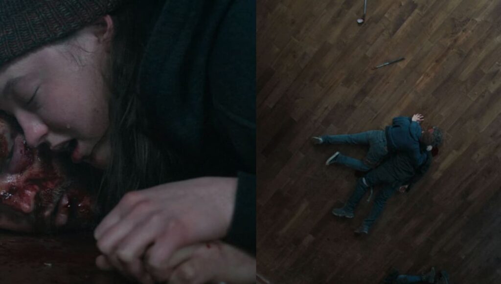 Após confrontá-lo, por fim, Abby o espanca com um taco de golfe em frente a Ellie, que assiste a tudo sem poder fazer nada.