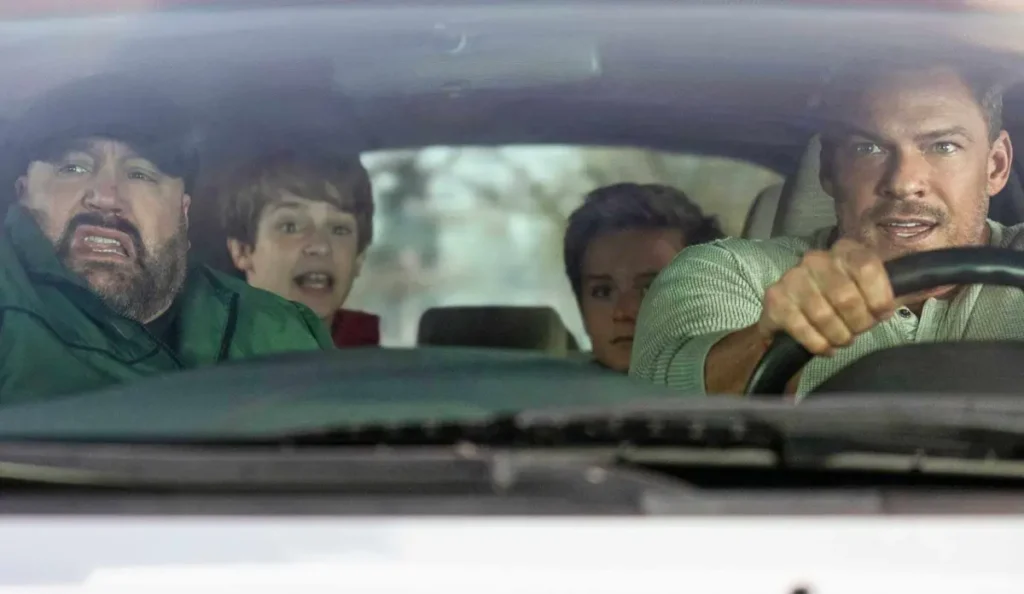 Em meio a tiros e perseguições, Jeff assume o volante em uma fuga desesperada, enquanto Brian tenta proteger as crianças — resultando em uma sequência de ação cômica no estilo das “buddy comedies” clássicas.